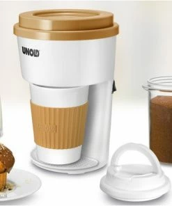 Ob auf dem Weg ins Büro oder im Urlaub: Für alle, die unterwegs lieber selbst gebrühten Kaffee trinken, gibt es jetzt den UNOLD® KAFFEEAUTOMATEN to go – inklusive praktischem Becher und Dauerfilter. Die kleine praktische Maschine ist perfekt für den schnell gebrühten, aromatischen Kaffee. Einfach Knopf drücken, Kaffee aufbrühen, Deckel auf den Becher und mit einem guten Kaffee in den Tag starten. Der Becher fasst ca. 350 ml, hat einen Becherdeckel mit Trinköffnung und passt in die meisten Autobecherhalter. Die Becherbanderole schützt Finger und Hände vor Hitze.